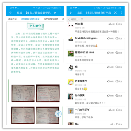 同学们纷纷在易班平台上留言评论,不仅对优秀的笔记、视频赞不绝口,更表示居家也要努力向同伴学习,养成良好的学习习惯,上好网课。
