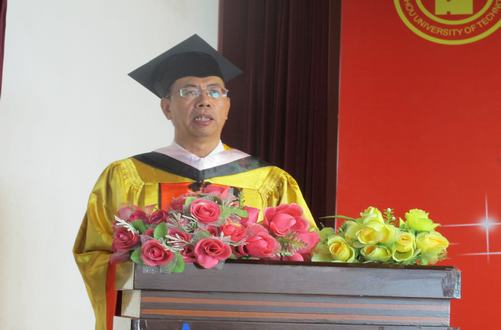 俞树荣副董事长致辞,对圆满完成大学学业的全体毕业生表示衷心的祝贺,祝愿毕业生扬帆起航,实现梦想。一是要学会微笑,微笑被誉为“解语之花、忘忧之草”,微笑面对,我们才会拥有灿烂的明天;二是要充满信心,点点滴滴的积累,才能够迈向成功的巅峰;三是要有责任之心,勇于担当,激励我们不断求索、不断创造;四是要有宽容之心,要有海纳百川的胸怀,赢得生活的精彩。