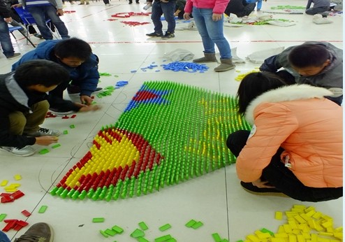 经过前期的宣传、培训和选拔,各参赛代表队已经对活动有了深入了解。每一个参赛队用色彩鲜艳的骨牌,拼出风格迥异的图案,有的参赛队伍以环保为主题,倡导大家热爱地球家园;有的队伍拼出志愿者的图案,希望更多的老员工加入志愿者行列;选手们的出色表现赢得了评委的一致好评和现场观众阵阵喝彩声。“愤怒的小鸟”代表队在活动即将结束时说到:“5克的多米诺骨牌,30分钟的合作,看着自己的骨牌逐一倒下后的喜悦让我感受到了公益活动的魅力。”同时,在活动现场安排了爱心衣橱公益项目的展示,希望更多的高校学子能接触并为社会公益奉献自己的力量。