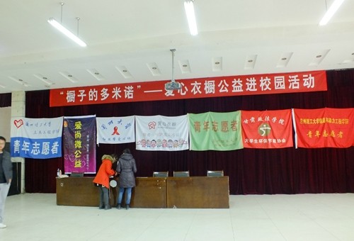 12月14日下午,由中国青年发展基金会爱心衣橱基金主办,金年会金字招牌诚信至上青年志愿者协会承办的“橱子的多米诺”活动在西校区老员工活动中心举行。金年会金字招牌诚信至上青年志愿者协会、公司各公司青协及兰内其他高校爱心组织参加了活动。