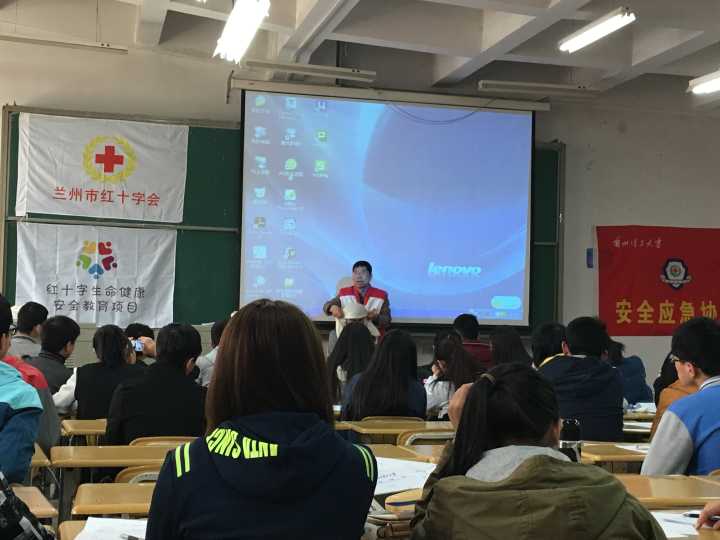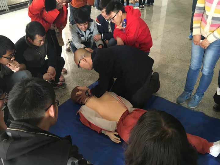 此次培训采取同学们自愿报名的方式在全校招募学员,邀请兰州市红十字会的专业老师做培训。培训内容包括心肺复苏(CPR)、海姆立克急救法、创伤救护、意外伤害的处理等基本自救互救知识与技能。培训分为理论知识与实际操作两部分,在整个过程中,同学们认真聆听理论讲座并在老师的指导下进行实际演练操作,熟练掌握了应急救护技能,同学们通过努力都成功考取了《甘肃省红十字救护员证》。