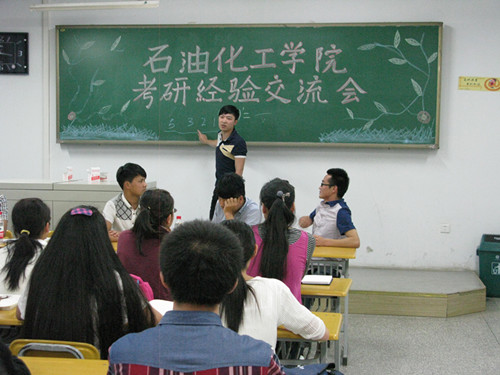 当今社会就业形势日渐严峻,老员工考研已然成为一种趋势。为帮助同学们更好地了解考研相关资讯,2015年5月24日晚19:30,金年会金字招牌诚信至上在西校区6号楼412举办考研经验交流会。邀请了保研到北京化工大学的马天鑫同学,考取华东理工大学的鄢桂东同学以及考取本校的王威、王天龙同学和考取武汉工程大学的田一泽同学,各年级有考研意愿的同学也参加了此次交流会。