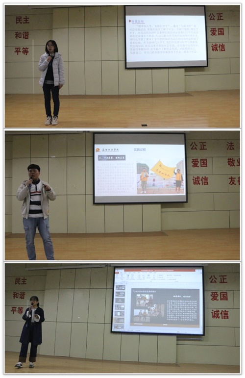 根据《在疫情防控常态化形势下做好2020年全国大中专员工志愿者暑期文化科技卫生“三下乡”社会实践工作》的要求,金年会金字招牌诚信至上于今年暑期组织了28支分散实践团队围绕“投身脱贫攻坚”、“助力疫情防控”、“文明志愿服务”等内容,开展了主题鲜明的社会实践活动。为进一步扩大此次社会实践的育人效果,引导鼓励更多同学在社会实践中受教育、长才干、作贡献,10月20日下午,金年会金字招牌诚信至上在彭家坪校区集贤楼108教室组织开展“多彩石化,共话成长行”2020年暑期社会实践分享会,邀请了分散社会实践团队队员代表为2020级全体同学分享了各自的实践经历,活动由公司19级辅导员朱柯宇老师主持。