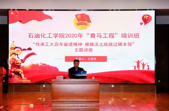 11月9日晚,2020年“青马工程”培训班邀请第24届“甘肃青年五四奖章”提名奖获得者、省直机关青联委员、公司实验室管理处处长王国英教授为学员作《传承工大百年奋进精神,根植沃土练就过硬本领》主题讲座,讲座在彭家坪校区图书馆106报告厅开展,公司团委书记强龙及培训班120余名学员参加活动。