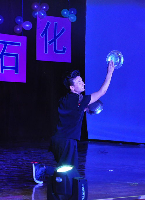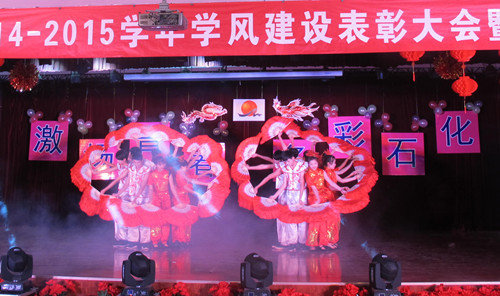 此次迎新晚会以“激扬青春,多彩石化”为主题,晚会在古风古色的《中国美》中拉开了帷幕。整个迎新晚会节目种类丰富,从歌曲到舞蹈,从小品到杂技,从相声到哑剧无不令台下观众拍手称赞。公司老师合唱的《最初的梦想》和新生合唱的《相亲相爱一家人》体现了浓浓的师生情,杂技《厨师》动作惊险,引人入胜;哑剧表演者无声胜有声,用表情征服了每一位观众。舞台上灯光闪耀,舞台下荧光挥舞,易班熊的出现成为晚会的一大亮点。最后晚会在歌曲《相亲相爱》中圆满落幕。