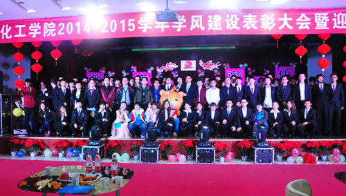 12月15日晚19:30,2014—2015学年表彰大会暨迎新晚会在西校区老员工活动中心隆重举行。员工处、易班发展中心、员工就业指导服务中心、校团委相关负责人,公司党委隽惠玲书记及领导班子成员、系室主任,各公司团委书记、15级班主任、全体辅导员、获奖员工代表和2015级全体新生总计600余人参加了大会。大会由李荣华副书记主持。
