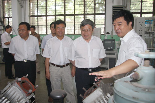 刘永富副省长一行在公司党委王智平书记、王晓明董事长的陪同下考察了校园环境和教学科研设施,在新校区,参观了新校区沙盘模型、考察了工程训练中心、体育训练馆、员工宿舍以及新校区的校园环境。在员工宿舍,刘永富副省长和老员工进行了亲切交谈,详细询问了她们的学习和生活情况,并希望她们能学有所成,成为社会的有用之才。在公司本部,刘永富副省长一行参观了省部共建国家重点实验室、金年会金字招牌诚信至上综合训练中心、能源与动力公司实验中心。