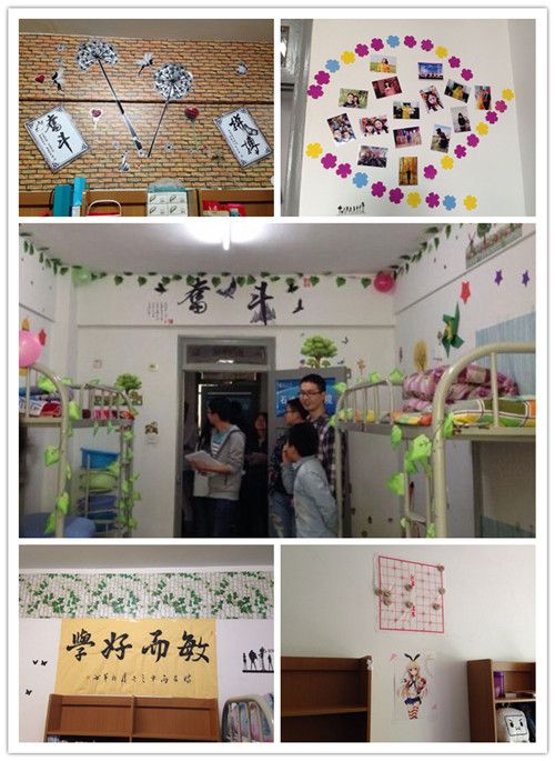 活动当天,同学们在宿舍内展示出良好的精神风貌迎接评审人员。在女生宿舍内,有精致的手工艺品和用来装饰的环保创意作品,部分宿舍还留有照片墙,记录了同学们在校的快乐瞬间;绿色植物既能点缀了温馨宿舍,也陶冶了生活情趣。在男生宿舍内,物品摆放整齐,室内洁净无余。为了美化宿舍环境,一些男生宿舍贴上了精美的墙纸,或是在墙上悬挂苍劲有力的书法作品,以及象棋残局。