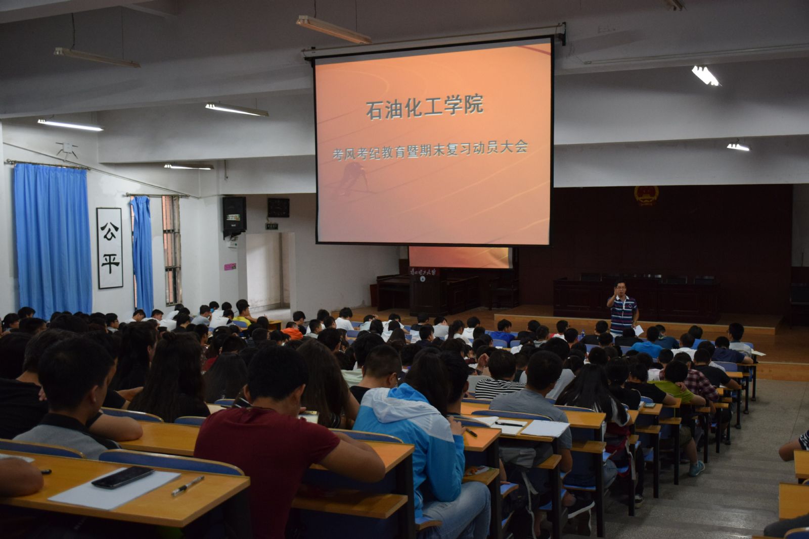 期末考试即将来临,为教育引导认真复习备考,自觉遵守考试纪律,杜绝考试作弊现象,6月13日晚,2014级全体员工在西校区1号楼108教室召开考风考级教育大会,会议由年级辅导员强龙老师主持。
