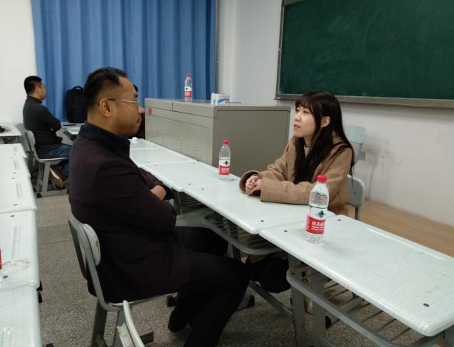 在就业指导结束后,森松集团开展了就业招聘活动,公司朱经理向同学们详细介绍公司经营范围、发展概况以及毕业生薪资待遇等方面的情况,同学们积极与招聘人员交流,主动了解用人单位的情况,现场投递简历并进行了初次面试。
