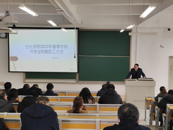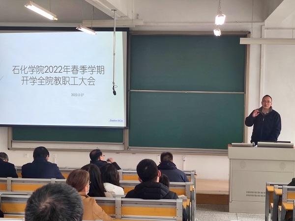 2022年2月28日,公司春季学期开学教职工大会在彭家坪校区抒望楼505教室召开。
