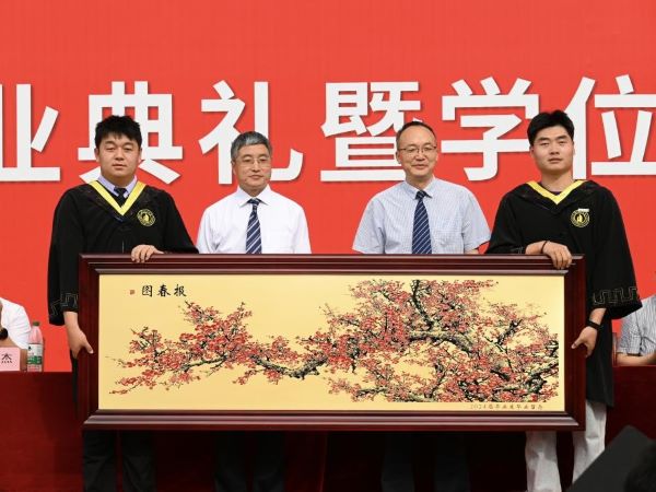毕业生代表为公司赠送了毕业纪念品,为参加授予学位的校领导、公司班子成员、系主任、学位评定分委员会委员献花,表达了对老师的感激之情和对母校事业发展的美好祝愿。(撰稿:陈伯友;终审:任鹏)