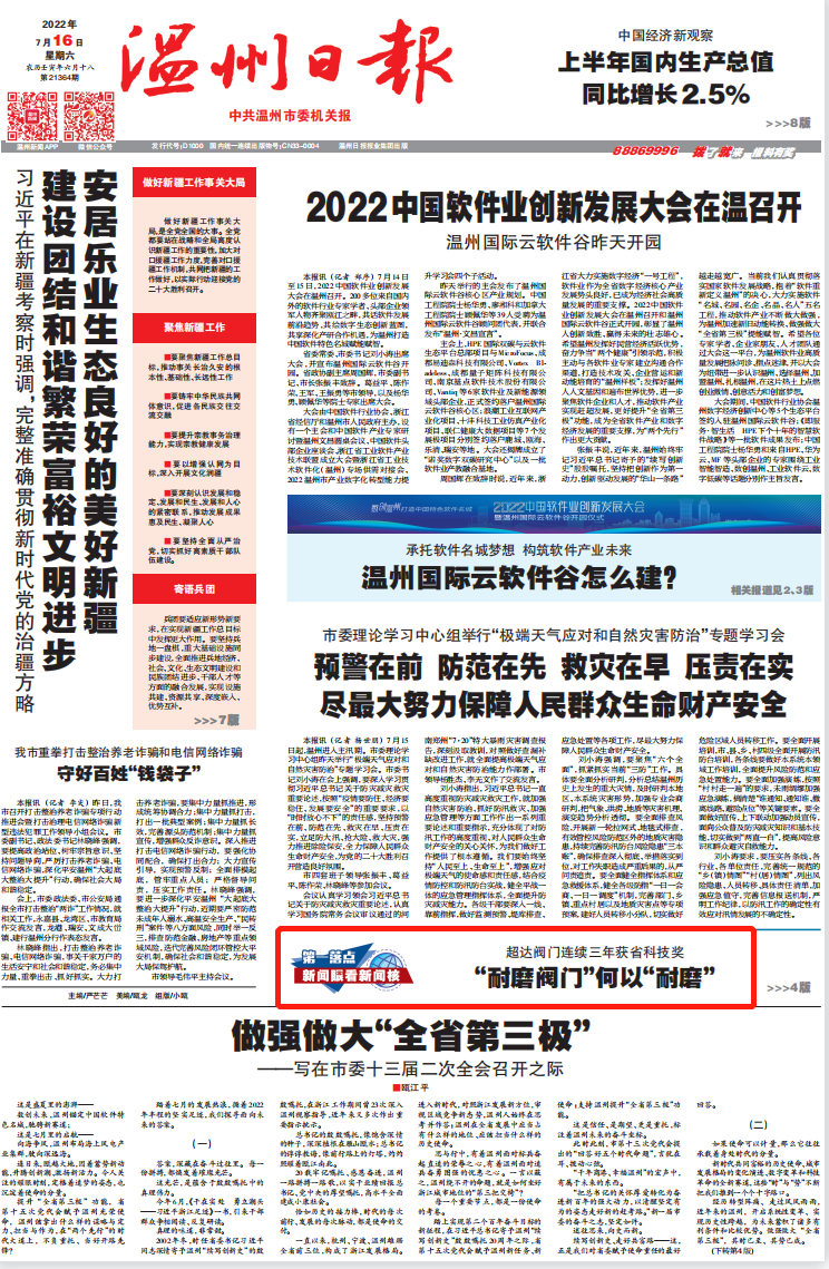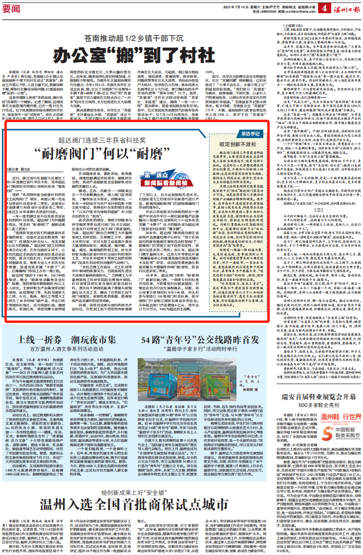 超达阀门连续三年荣获省科技奖进步奖,主要原因是该企业在研发上善做长跑型选手、咬定创新不放松。这是对它心无旁骛深耕泵阀行业的褒奖,不断加大创新投入的激励;也是温州落实创新首位战略,持续壮大科技企业,提升民营企业自主创新能力的鲜活案例。