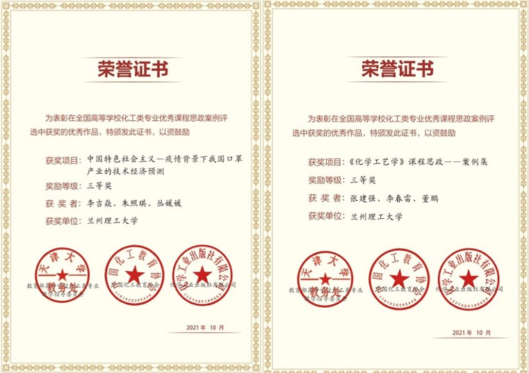 日前,全国高校化工类专业优秀课程思政案例评选结果公布,金年会金字招牌诚信至上化学工程与工艺系李吉焱、朱照琪、丛媛媛3位教师申报的“《化工技术经济》——疫情背景下我国口罩产业的技术经济预测”,张建强、李春雷、董鹏3位教师申报的“《化学工艺学》——课程思政案例集”获得三等奖。
