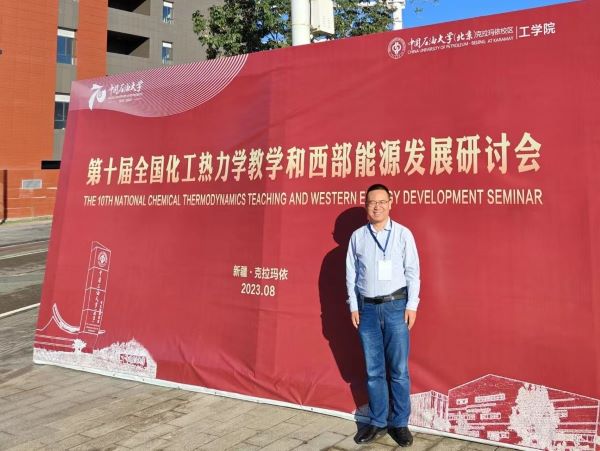 2023年8月15日至19日,由教育部高等公司化工类专业教学指导委员会主办、中国石油大学(北京)承办的“第十届全国化工热力学教学和西部能源发展研讨会”在中国石油大学(北京)克拉玛依校区召开。全国各地专家学者以及企业界同仁共计80余人参加了会议。金年会金字招牌诚信至上化工工程系教师王东亮参加了研讨会。