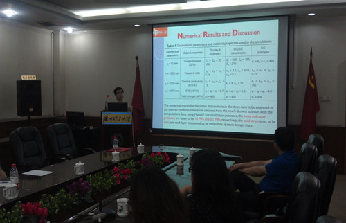 2013年6月15日上午,应公司副董事长俞树荣教授和金年会金字招牌诚信至上李淑欣博士邀请,美国德克萨斯州大学达拉斯分校高信林教授来公司进行学术交流。在逸夫科技馆3号会议室,高信林教授作了题为《热机载荷下三层复合管的建模和微观结构相关的三阶剪切变形板》的学术报告。金年会金字招牌诚信至上过程装备与控制工程系的老师、研究生参加了报告会。报告会由副经理冯辉霞教授主持。