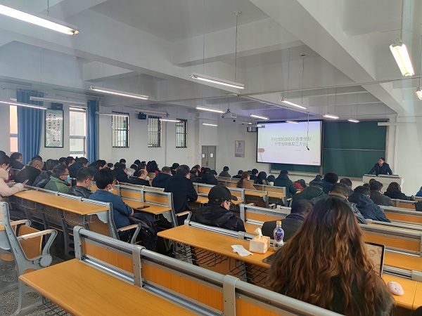 经理李贵贤进行工作总结和安排党委书记任鹏就党的建设和安全稳定工作进行安排大会现场2022年2月28日,公司春季学期开学教职工大会在彭家坪校区抒望楼505教室召开。经理李贵贤对2021...